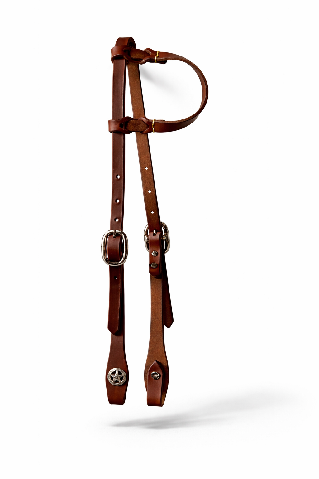 Jednouška s proplétaným ouškem, barva chocolate brown, vyrobena z extra jemné kůže, nerezové US kování.