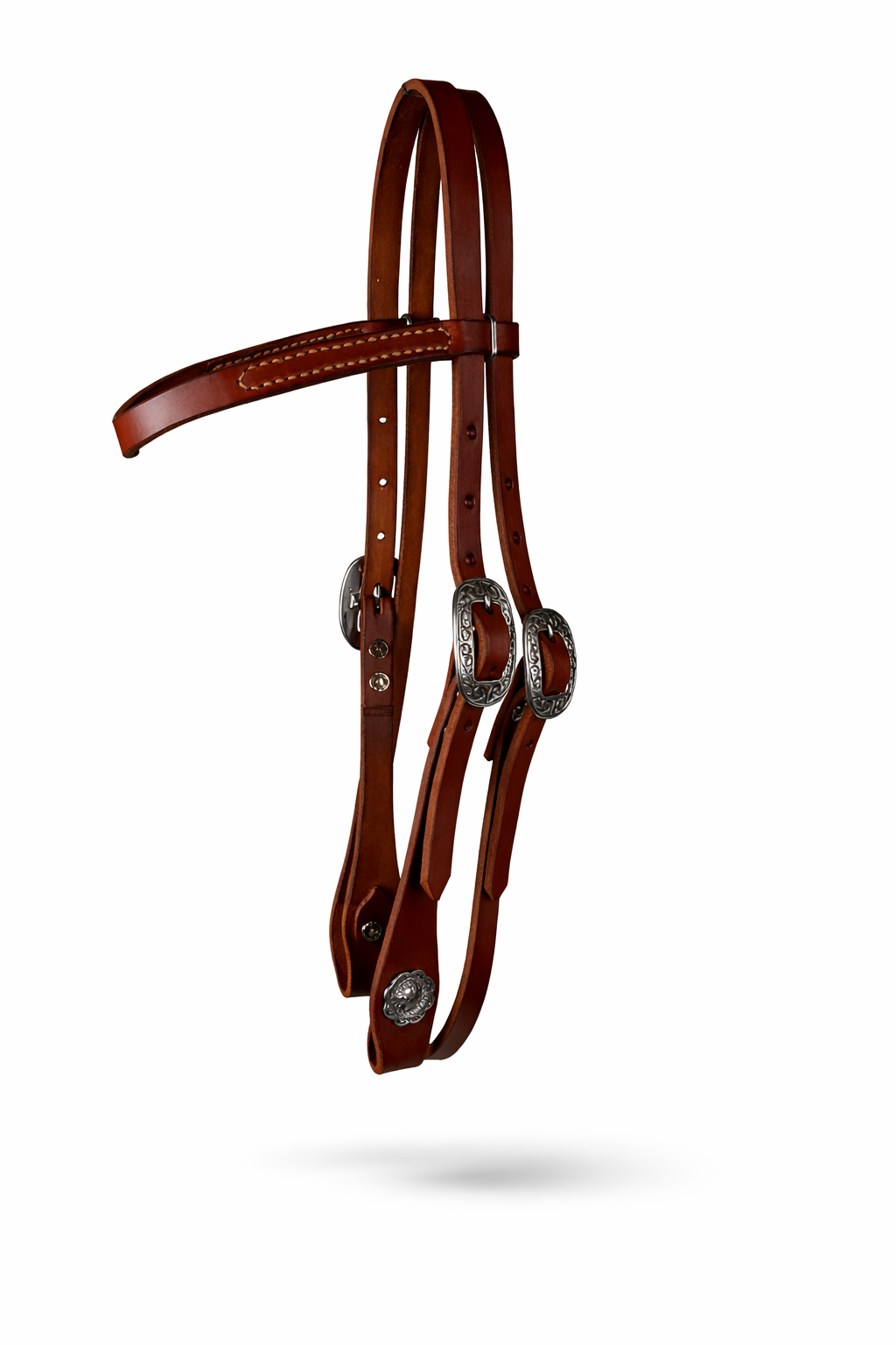 Uzdečka z prémiové kůže, ručně prošívaná čelenka, barva teddy brown, kvalitní nerezové US kování.