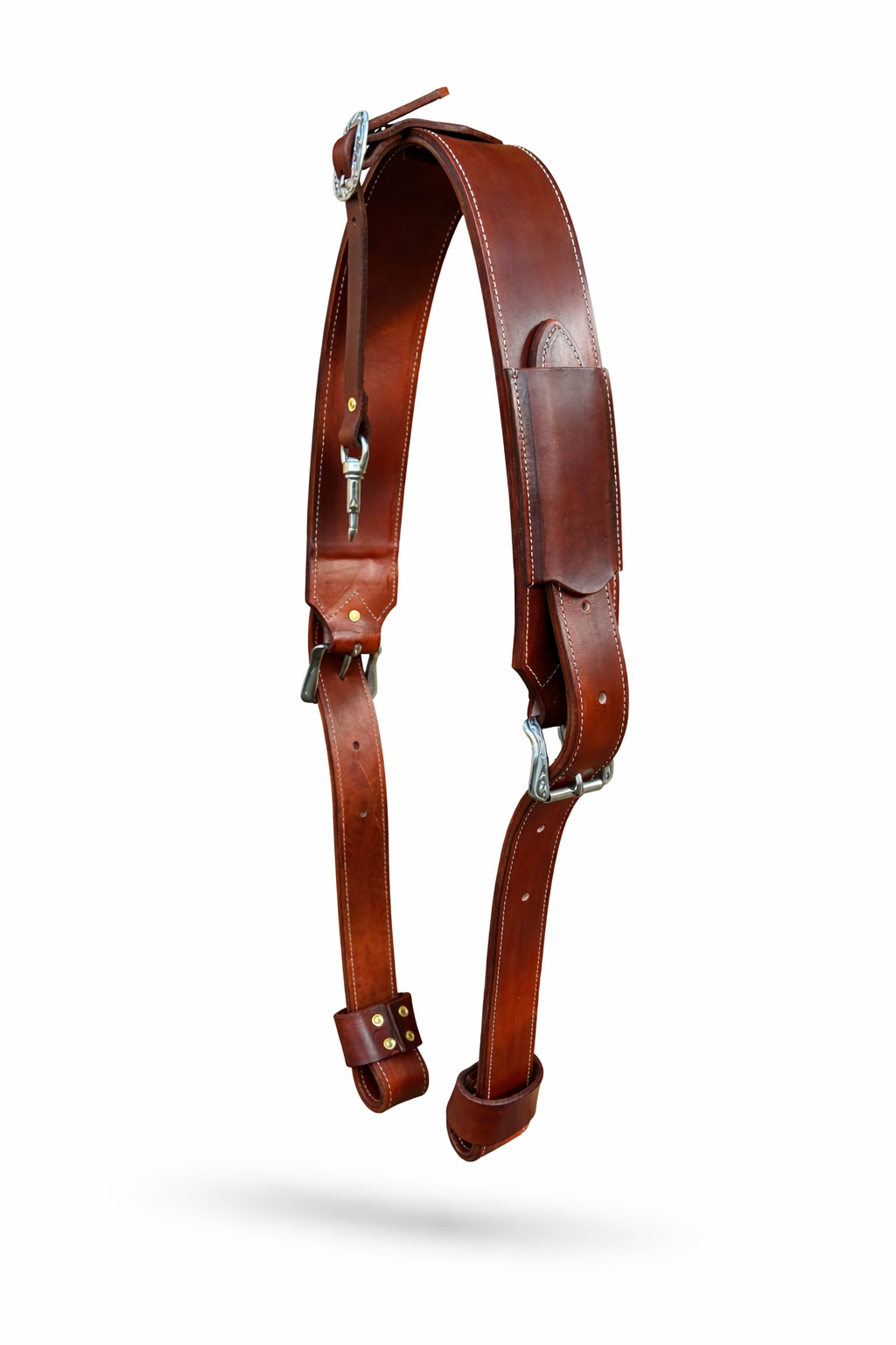 Nezbytný doplněk zejména pro cutting, cowhorse nebo roping. Své využití ale najde i u reiningových jezdců, trailu či při práci na farmě a výletech do přírody. Podbřišník je široký osm cm, off billets 4,5 cm. Vše je vyrobeno z 5,5 mm silné měkké kůže, která je podšitá další - velmi jemnou, ale extrémně pevnou kůží. Podbřišník a off billets jsou po celé délce prošívané a na klíčových místech zpevněné mosaznými nýty. Pevnou konstrukci a prémiový vzhled doplňuje stříbrné US nerezové kování.
